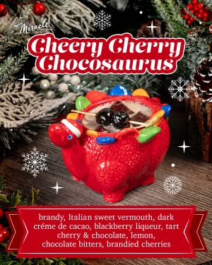 We are not a restaurant, but the most fabulous over the top themed holiday cocktail bar experience. Best to eat before or after your experience.