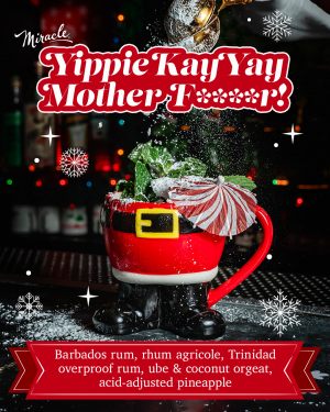 The Miracle Experience is 1hr and 30mins of festive cocktails, hot chocolate, and sweet treats. Your bill must be settled within this time frame.